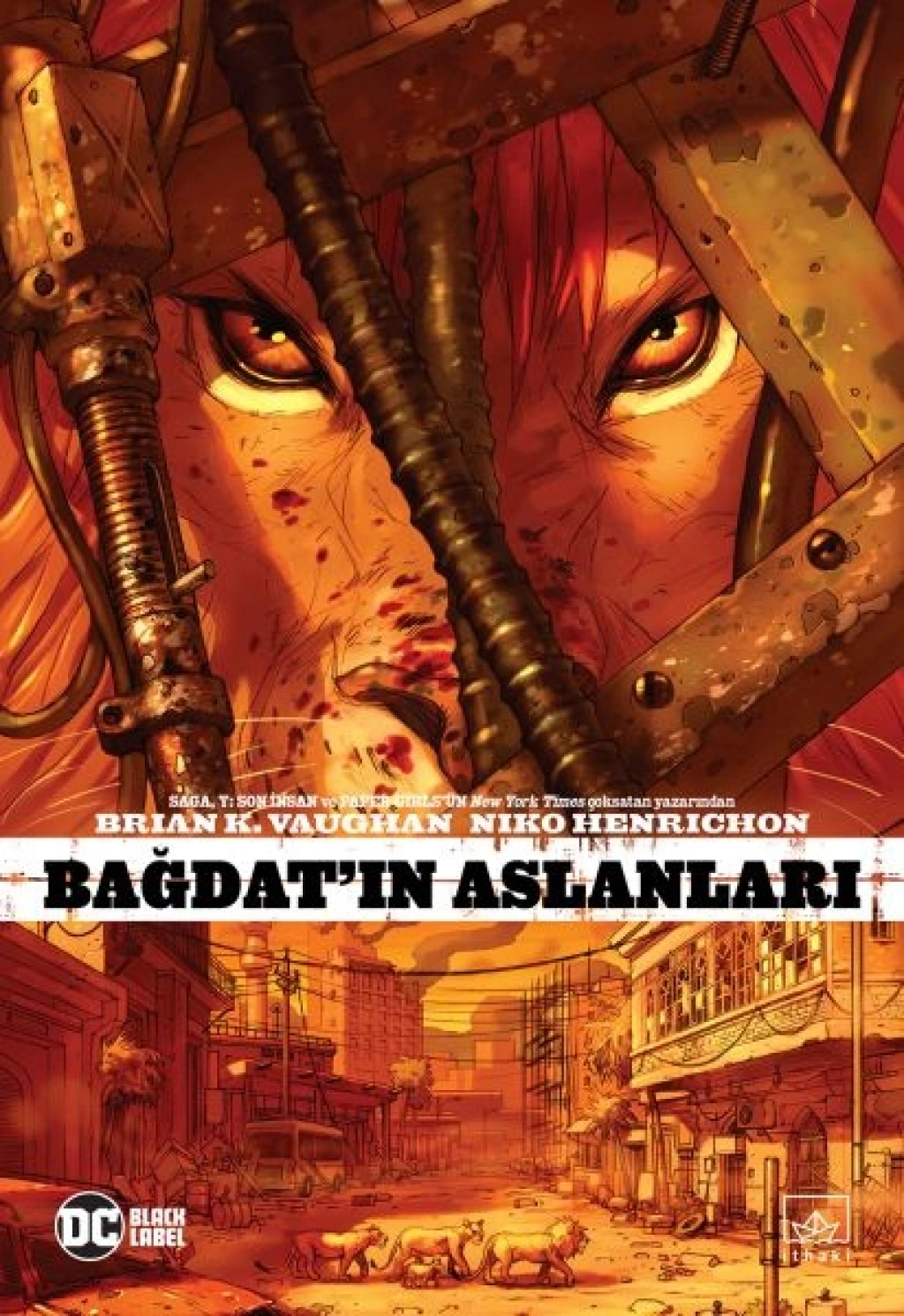 Gerçek olaylardan esinlenen BAĞDAT’IN ASLANLARI’nda ödüllü yazar Brian K. Vaughan ve çizer Niko Henrichon Irak Savaşı’nda geçen bu can alıcı hikâyeyle savaşın karanlık yüzüne ve hayatta kalmak için ödenen bedellere benzersiz bir pencere açıyor. Bağdat’taki bir grup aslanın yaşadıkları üzerinden anlattıkları kışkırtıcı öykü özgürlüğün gerçek doğasına yönelik – özgürlük birileri tarafından mı verilir yoksa hür irade ve fedakârlıkla mı kazanılır?