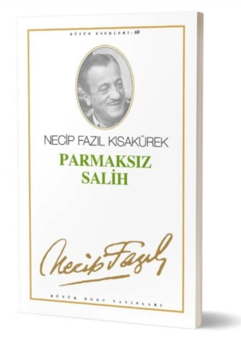 PARMAKSIZ SALIH:(4 Perde)Eserde, "en canhiras sebepleri ve neticeleriyle doktor ve ilaci olmayan hastaligi, 'kumari' göstermek" istedigini söyleyen Necip Fazil, Parmaksiz Salih ile ilgili olarak kendisine yöneltilen bir suale su cevabi veriyor: "Eserde ifadelendirmek istedigim tek dava, binbir tezad ve binbir zit kader cereyani içinde hakiki fiskirisini bulamamis ve hatta kötülük baskisi altinda uyusmus bir ruhun, en büyük saike kavusur kavusmaz birden sahlanisi; ve tam 55 yil bilmeden hasret çektigi ve daima istekli yasadigi ulvî aksiyona siddetle atilisidir."Eser 1948-1949 kisinda Istanbul sehir tiyatrosunda temsil edilmistir.(Yazildigi tarih: 1948)