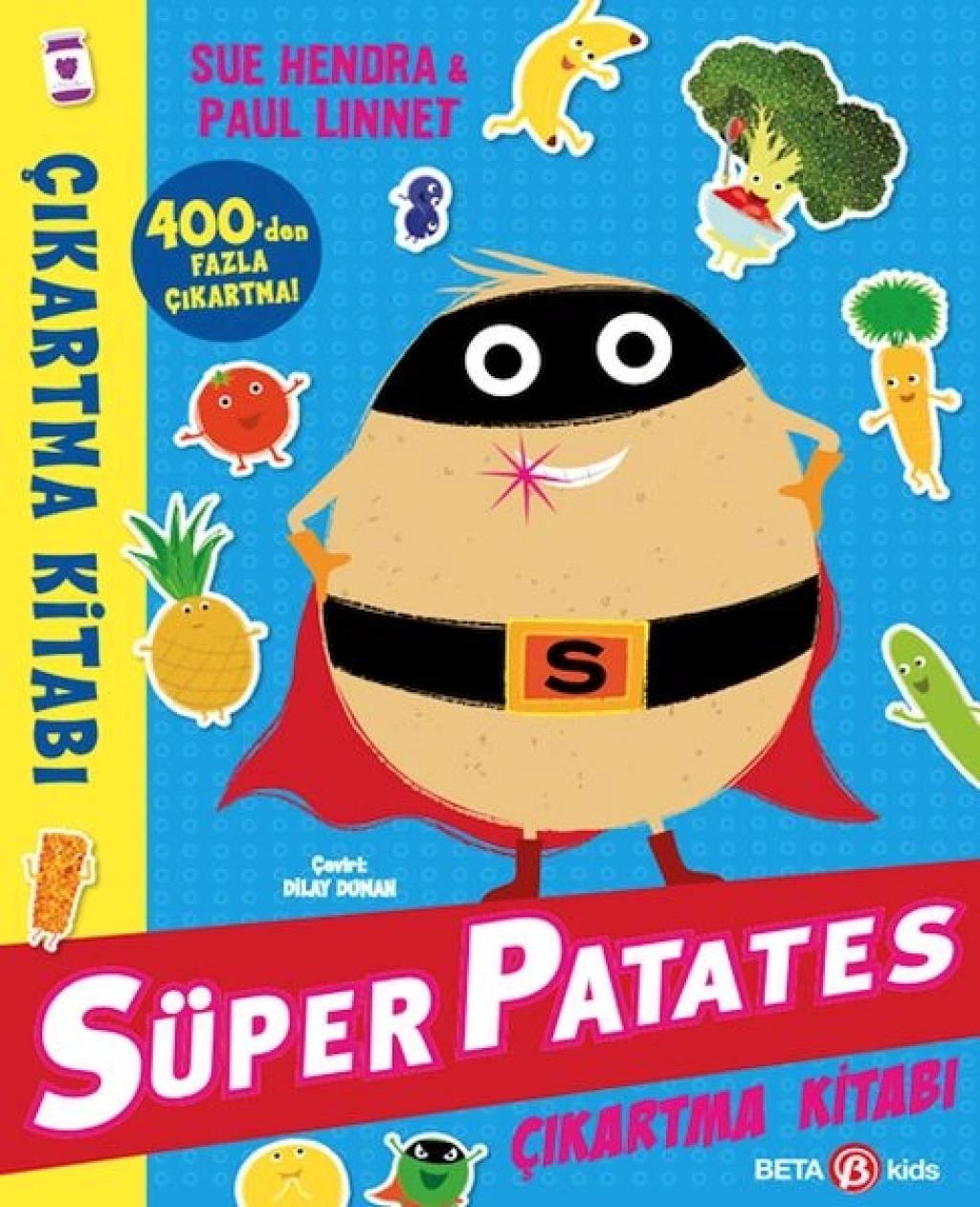 Süper Patates günü kurtarmaya geliyor! 400'den fazla çıkartması ve eğlenceli faaliyetleriyle Süper Patates Çıkartma Kitabı, sıkıntıdan patlayan Kaçak Bezelye’yi bile gülümsetir! Süper seveceğin oyunlar, bulmacalar ve çıkartmalarla süpermarketteki rengârenk eğlenceyi kaçırma!